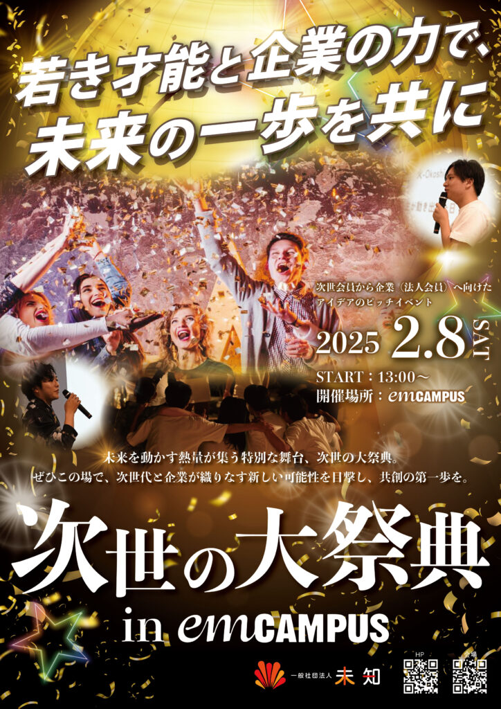 未来を創る挑戦者たちが集結する、年に一度のビッグイベントがついに開催決定!その名も「次世の大祭典」。情熱とアイデアを武器に、次世代のリーダーたちが企業とともに新たな可能性を切り開く特別な舞台が今年も帰ってきます!